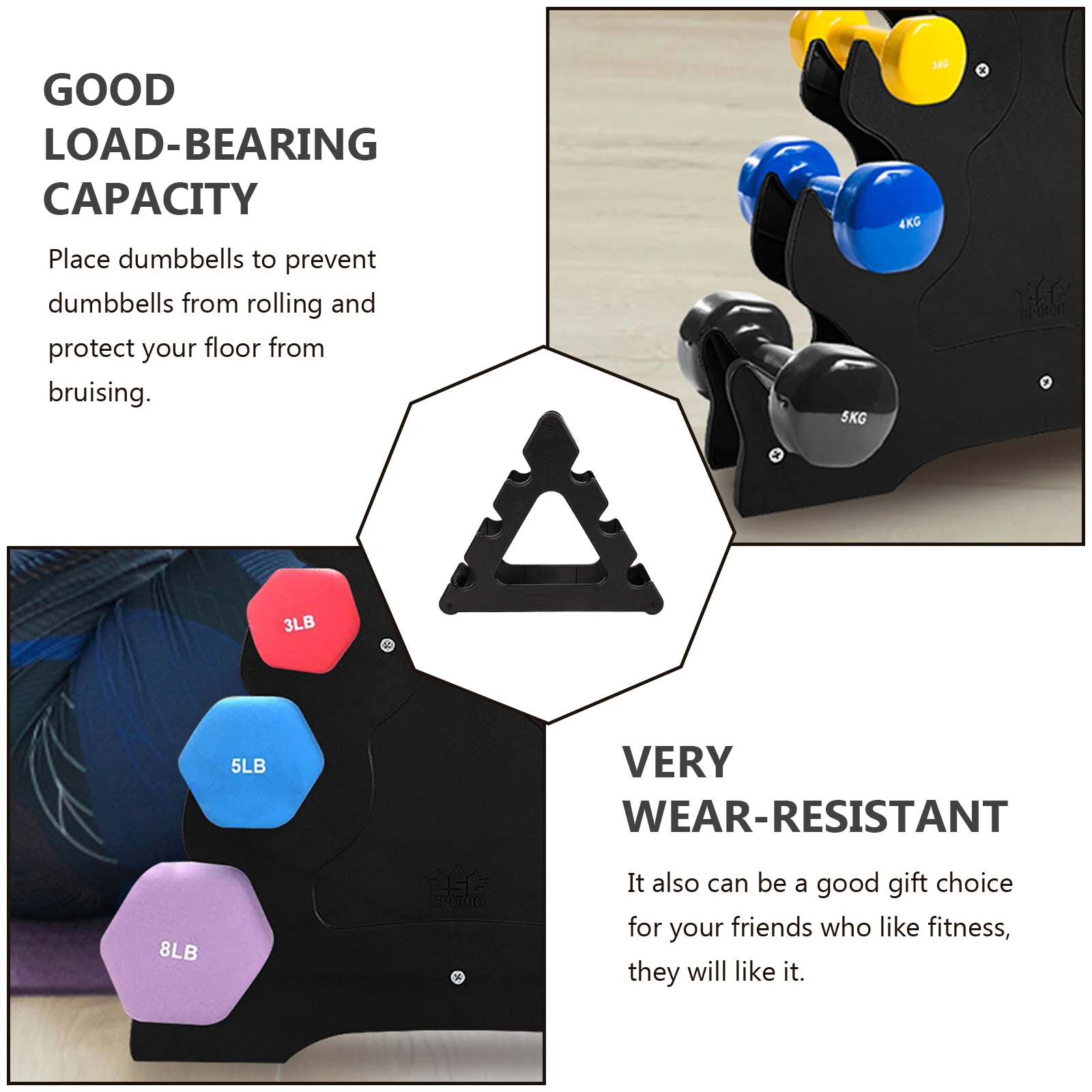 -A good partner for dumbbells. Put it on the shelf, on the desk, look good, remind yourself to exercise at any time.